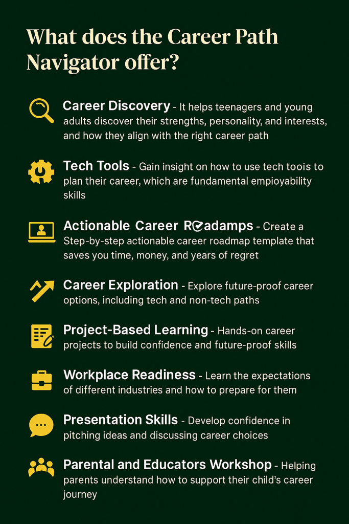 Yes, there is a workshop for parents and educators. Parents are encouraged to participate in certain sessions to understand their children’s aspirations and collaborate in decision-making.