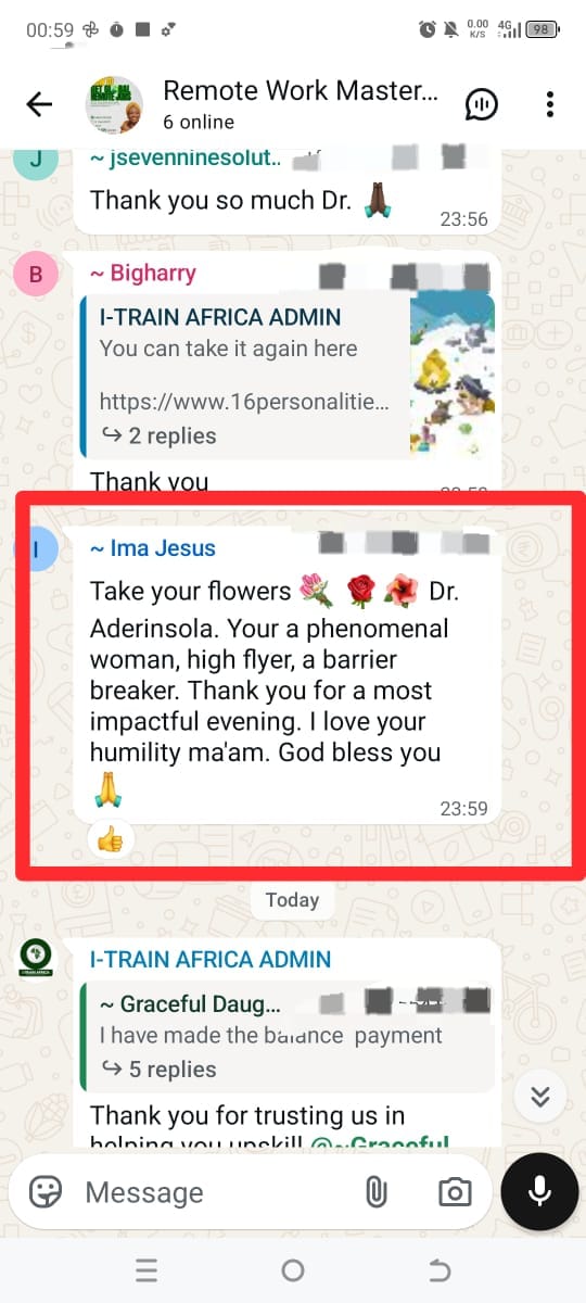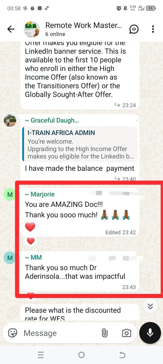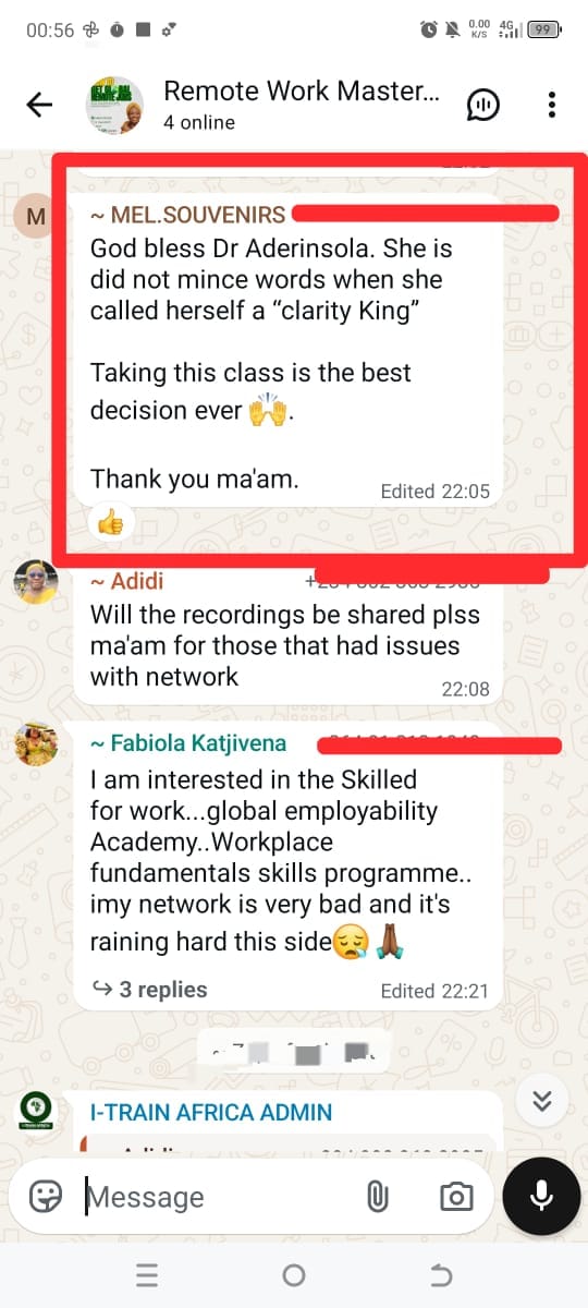 If you have any concerns or questions, please feel free to reach out to our support team (itrainafrica@gmail.com or WhatsApp +2348053453099),and we’ll be happy to assist you.