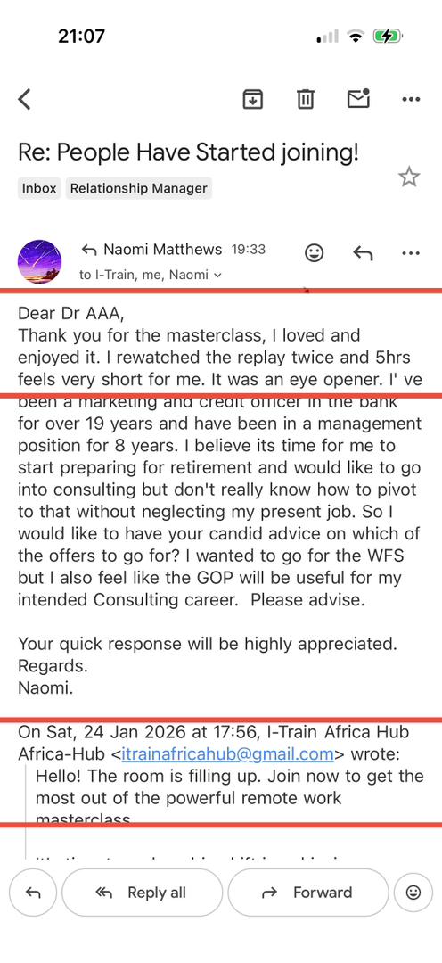 If you have any concerns or questions, please feel free to reach out to our support team (itrainafrica@gmail.com or WhatsApp +2348053453099),and we’ll be happy to assist you.