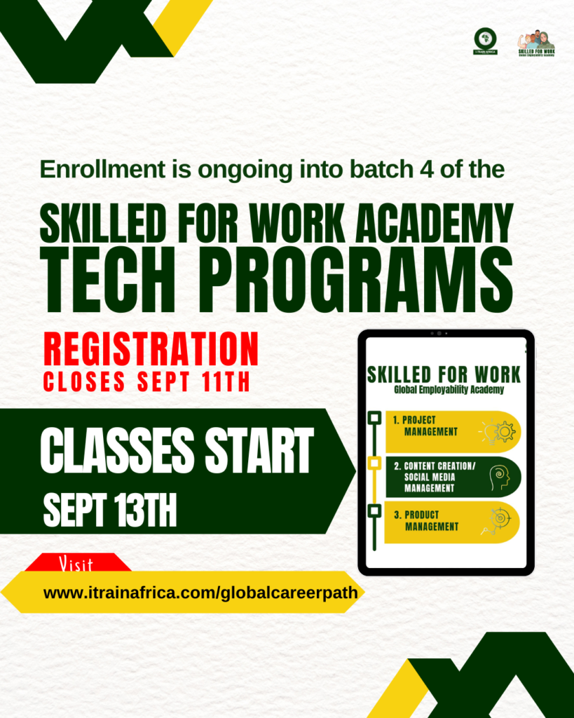 Skilled For Work is a finishing school for literate youths and women starting their careers or transitioning and hoping to gain 21st-century, in-demand workplace skills to become globally employable.