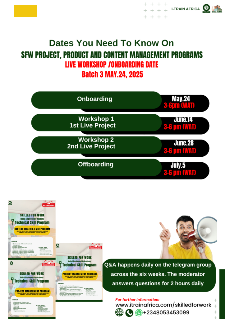 All live workshops are 3 PM – 6 PM WAT