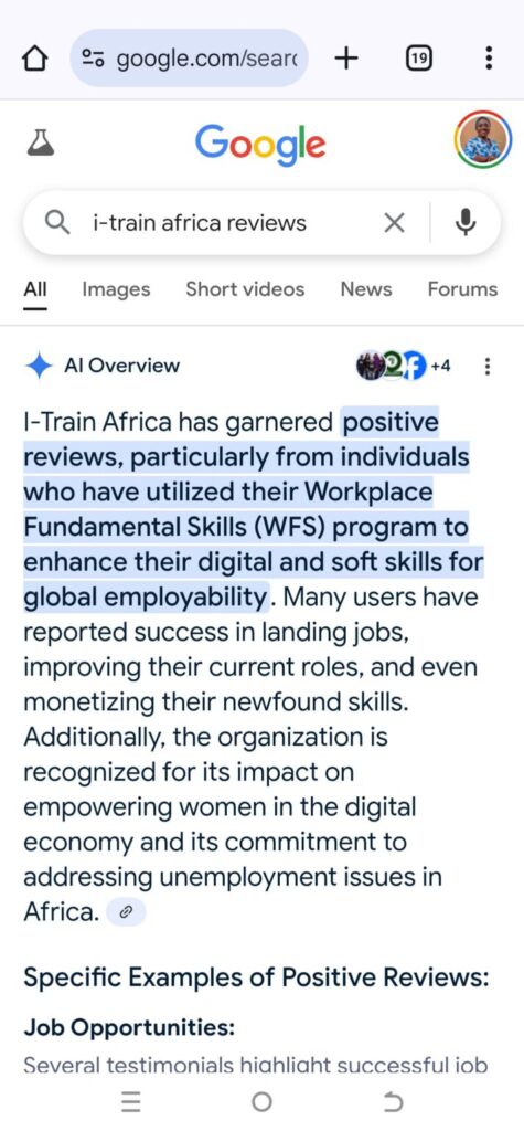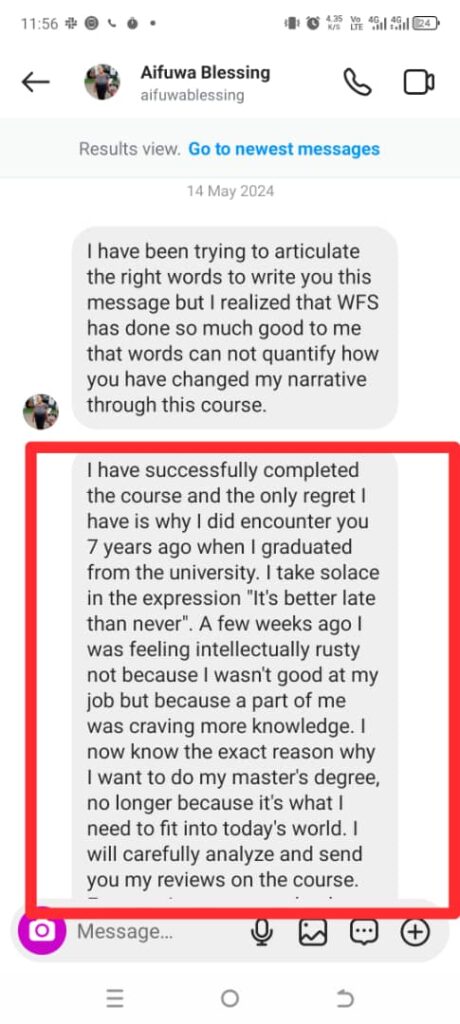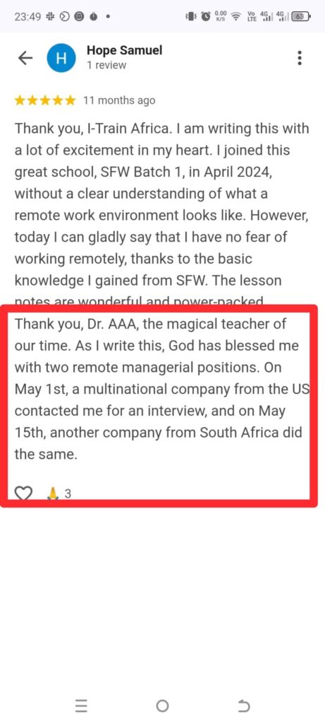 “I went for an interview and had no clue about how to go about it until I came across I-Train Africa and got clarity. I got a job shortly after I registered for WFS.”